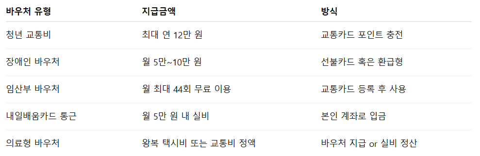 🧾 2025년 주요 교통비 지원 바우처 종류